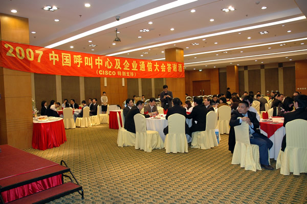 2007年4月18日至20日,2007中國呼叫中心及企業(yè)通信大會在上海光大會展中心國際大酒店隆重召開,以下是答謝酒會(思科特別支持)相關圖片報道: