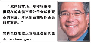 “在成熟的市場,規(guī)模是很重要的”,Dominguez承認,但是他又認為,現(xiàn)在的電信市場處于全球化變革的前沿,大家都在思考如何建立一個全新的網(wǎng)絡(luò),并且整個網(wǎng)絡(luò)上的應(yīng)用也處于變化中,在這種情況下,“創(chuàng)新和智能還是非常重要的”,因此思科的機會還是非常大。