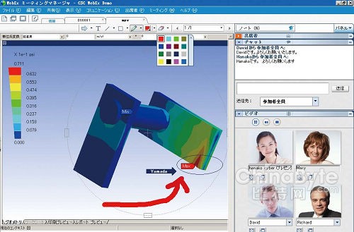 WebEx中國區(qū)市場(chǎng)經(jīng)理黃艷的演示中,整合了包括視頻對(duì)話、文件共享、協(xié)同畫圖、權(quán)限管理等功能的WebEx,效果儼然和傳統(tǒng)開會(huì)沒有任何區(qū)別。5人的會(huì)議內(nèi)容中,大家可以相互面對(duì)面發(fā)言;對(duì)某個(gè)文件內(nèi)容有疑問,可以一同在上面涂涂改改;一邊講一邊能夠翻動(dòng)演示的PPT讓所有人看見;甚至還能共享自己的桌面讓所有看見,并且操作。