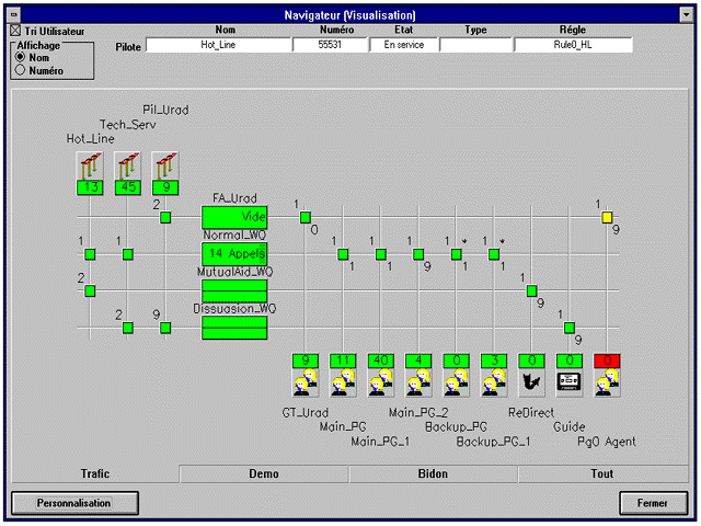 A4400 CCS 呼叫中心監(jiān)管系統(tǒng)是A4400 CCD 的完美配套設(shè)備。此監(jiān)管系統(tǒng)組件提供最新實(shí)時監(jiān)控功能。經(jīng)理和主管不僅能很好協(xié)調(diào)呼叫處理過程,而且也能觀察服務(wù)水準(zhǔn)、話務(wù)量情況等,并能在現(xiàn)場采取相應(yīng)的措施。