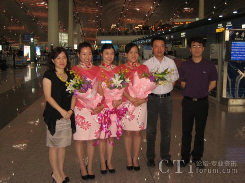 信息導(dǎo)航業(yè)務(wù)中心總經(jīng)理楊勇、副總經(jīng)理魏婕等領(lǐng)導(dǎo)前往機場送行,中心副總經(jīng)理郝孟堯帶隊前往韓國。中心領(lǐng)導(dǎo)向三位114話務(wù)員送上了獻花與祝福,希望她們珍惜此次走出國門為世博會服務(wù)的難得機會,展現(xiàn)114的風(fēng)采,將北京聯(lián)通114最動聽的聲音、最美麗的微笑、最優(yōu)質(zhì)的服務(wù)向世界呈現(xiàn)。三位114話務(wù)員表示,將用純正、專業(yè)的中文綜合信息咨詢服務(wù),讓世界感受到聯(lián)通114的熱情與微笑。