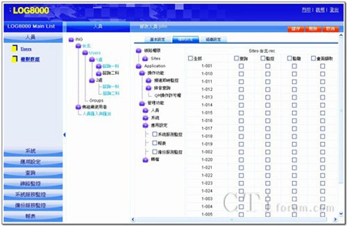 權(quán)限管理設(shè)計,采樹枝狀展開圖之設(shè)計模式,讓系統(tǒng)管理者可以輕易地掌握目前建立組織(各個據(jù)點)、人員(為值機員、督導(dǎo)、評分員或管理者)與不同群組之狀態(tài),設(shè)定多層級的權(quán)限密碼,增加維護便利性。