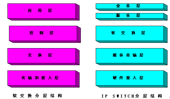 。。SUNTEK IP SWITCH的設(shè)計概念參考業(yè)界前瞻性的NGN體系,其體系結(jié)構(gòu)與軟交換的分層結(jié)構(gòu)的對應關(guān)系如下: