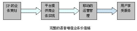 在語(yǔ)音雜志業(yè)務(wù)運(yùn)營(yíng)中,SP、語(yǔ)音平臺(tái)提供商、移動(dòng)公司、移動(dòng)用戶組成了一條完整的價(jià)值鏈,如下圖所示: