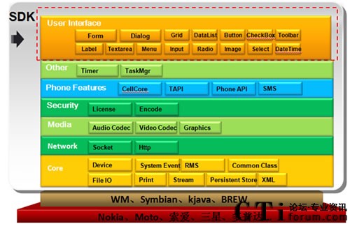 據(jù)新太科技內部相關人員介紹,mWAY的技術架構,一方面可以支持電信網絡各種各樣的接入,保證和運營商已有的網絡的互聯(lián)互通,同時也支持和移動互聯(lián)網手機之間的連接,支持相關音頻、視頻的呼叫、傳送。業(yè)務接口可以給第三方應對研發(fā)需求,手機終端有相關的引擎,滿足手機終端的業(yè)務研發(fā)的需求,這部分有一個手機客戶端軟件,是一個移動性的引擎。這個引擎移植在手機終端客戶端上,給上層提供統(tǒng)一的解析開放系統(tǒng)。