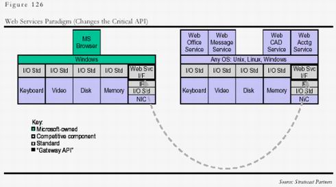 由于主要取決于業(yè)內(nèi)其他企業(yè)的接受,自身固定投資需求較少,操作平臺(tái)和應(yīng)用平臺(tái)成了價(jià)值鏈中最容易控制,相對(duì)而言也是爭(zhēng)奪最激烈的環(huán)節(jié)。做為最早理解了價(jià)值鏈的企業(yè),微軟在電信業(yè)內(nèi)正在積極復(fù)制自己在IT業(yè)的成功,希望獨(dú)占運(yùn)營(yíng)價(jià)值鏈中的應(yīng)用平臺(tái),這就是其極力鼓吹的.Net概念!