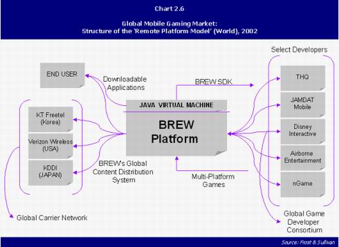 當(dāng)然,企業(yè)對(duì)未來(lái)的把握也往往和自己對(duì)這個(gè)行業(yè)的熟悉程度分不開(kāi)的,所以微軟今天的策略大都帶有強(qiáng)烈的IT和互聯(lián)網(wǎng)的味道。而移動(dòng)市場(chǎng)當(dāng)中的新貴高通公司,就想當(dāng)年的微軟一樣,偶然性地掌握了CDMA的核心技術(shù),同時(shí)由于移動(dòng)通信在全球的興起,成了移動(dòng)通信價(jià)值鏈中的重要環(huán)節(jié)之一。但是,由于所有的競(jìng)爭(zhēng)廠家都希望自己擁有核心技術(shù),技術(shù)上略落后,但更開(kāi)放的GSM得到了更多市場(chǎng)的青睞。為了保持自己的地位,高通采取了與微軟相似的地位,拋出了名為BREW的移動(dòng)應(yīng)用平臺(tái)。與微軟在寬帶和廣電的策略相同,高通在移動(dòng)通信領(lǐng)域提供從技術(shù)、服務(wù)到外包運(yùn)營(yíng)等全套解決方案。在移動(dòng)游戲領(lǐng)域,高通為美國(guó)第一大無(wú)線運(yùn)營(yíng)商Verizon搭建了基于BREW的游戲業(yè)務(wù)平臺(tái),同時(shí)負(fù)責(zé)這一平臺(tái)的運(yùn)圍和與游戲提供商的合作及管理、促銷(xiāo)等工作。與Verizon的合作是獨(dú)家的,建立在利潤(rùn)分成的基礎(chǔ)上,到現(xiàn)在為止,這種模式是移動(dòng)游戲領(lǐng)域最成功的合作之一?梢哉f(shuō),高通把自己變成了半個(gè)運(yùn)營(yíng)商,同時(shí)由于擁有客戶資源和合作模式提供,高通的地位有望超過(guò)Verizon。