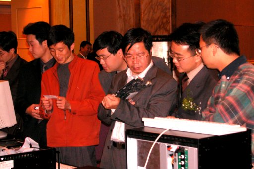 新太科技測(cè)試部經(jīng)理李文兵演示DN產(chǎn)品的聯(lián)接使用