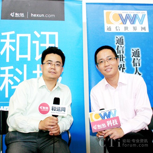 圖:通信世界網(wǎng)總編劉啟程(左)現(xiàn)場(chǎng)訪談東進(jìn)技術(shù)總裁賀建楠(右)