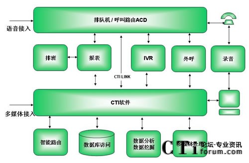 多媒體接入方式,應對以混合業(yè)務處理的高效座席處理,才是現(xiàn)代化、高效率的聯(lián)絡中心業(yè)務模式。而聯(lián)絡中心后臺的業(yè)務處理卻是統(tǒng)一的,其構架層次分明,如下圖示:
