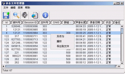 Manager是奧迪堅全新推出的基于數(shù)據(jù)庫的錄音文件管理應用軟件,主要針對ACM的內(nèi)置錄音系統(tǒng)所錄制下來的文件進行索引、播放、保存、備份、格式轉(zhuǎn)換、搜索等各項操作,使管理者能夠?qū)蛻舴⻊?wù)人員進行服務(wù)質(zhì)量考核與管理,保證微笑客戶服務(wù),提升客戶的滿意度。整個服務(wù)中心的電話錄音采用電腦數(shù)字化技術(shù),因此無需增加傳統(tǒng)的錄音服務(wù)器,每路座席外線都自帶錄音資源,可以進行多線同時錄音,錄音記錄,錄音回放,并且可以實現(xiàn)撥號/摘機識別/掛機識別/通知錄音/錄音監(jiān)聽/完成記錄等功能,每個模塊均采用獨立運行方式,互為備份不影響。奧迪堅電話錄音系統(tǒng)提供智能型的?旖M合設(shè)置和條件,包括錄音查詢及系統(tǒng)參數(shù)設(shè)置;通道狀態(tài)設(shè)置;各種條件的錄音查詢;多通道連選同時播放;組合的保存、備份和刪除;工作日志的記錄和打。幌到y(tǒng)和用戶權(quán)限的增刪編輯等功能,極大的方便管理人員的操作和使用。