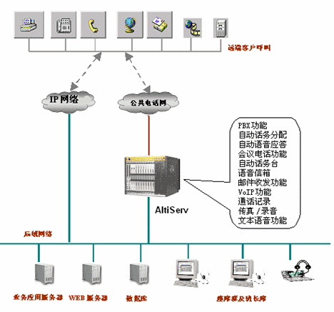 - 話(huà)務(wù)自動(dòng)分配ACD功能:對(duì)撥入系統(tǒng)內(nèi)部的電話(huà),可以選用撥入電話(huà)自動(dòng)分配到員工的話(huà)機(jī)上,如對(duì)同一個(gè)業(yè)務(wù)功能相同的部門(mén), AltiWare