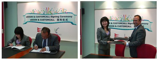 2007年5月16日,億迅中國(guó)軟件有限公司北京分公司的會(huì)議室里花團(tuán)錦簇,eSOON與Customcall公司的簽約儀式在和諧融洽的氣氛中進(jìn)行。雙方先對(duì)未來的合作發(fā)展進(jìn)行了討論,10點(diǎn)58分,億迅公司CEO李冰影女士與澳洲Customcall