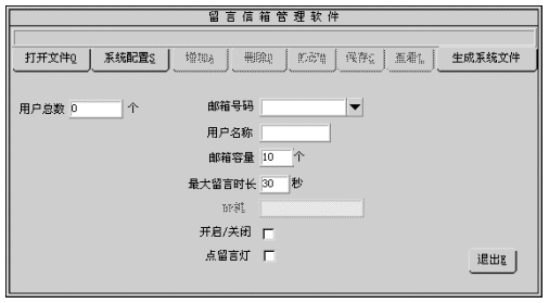 4). 主人密碼:信箱主人訪問自己信箱的口令。主人可以通過(guò)訪問自已的信箱修改密碼,若主人忘記密碼可通過(guò)管理員將其設(shè)置為缺省值0000。