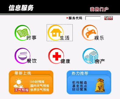 在上海IPTV提供的業(yè)務(wù)中,信息服務(wù)也是眾多用戶(hù)喜聞樂(lè)見(jiàn)的一項(xiàng)業(yè)務(wù),內(nèi)容覆蓋廣泛。它提供了時(shí)事、生活、娛樂(lè)、餐飲、健康、房產(chǎn)等信息,其中“時(shí)事”一欄呈現(xiàn)了新浪上海熱線實(shí)時(shí)傳遞的全球最新新聞資訊,讓老百姓“手握遙控器,便知天下事”,“健康”一欄更是一網(wǎng)打盡上海地區(qū)醫(yī)療機(jī)構(gòu)的信息資訊,特色專(zhuān)科搜索為用戶(hù)提供便捷的醫(yī)療信息服務(wù),“房產(chǎn)”中上海地區(qū)各類(lèi)二手房產(chǎn)訊息一應(yīng)俱全,價(jià)格、地段、房型等應(yīng)有盡有。