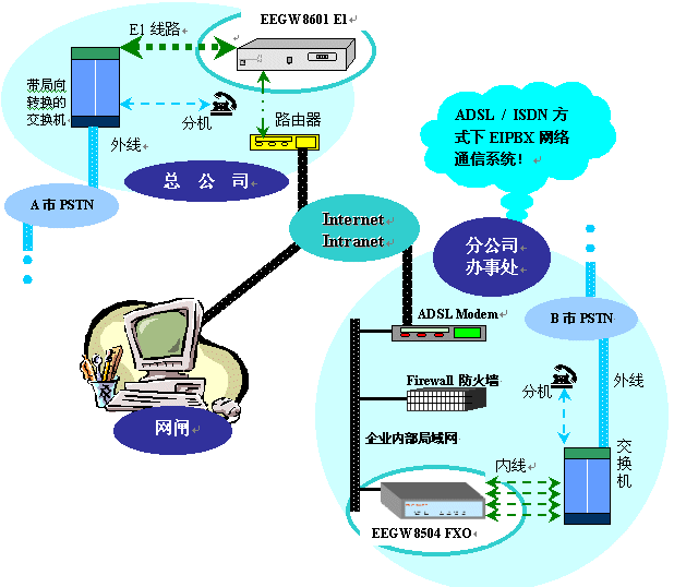 雙電寬帶網(wǎng)絡(luò)通信系統(tǒng)EIPBX解決方案