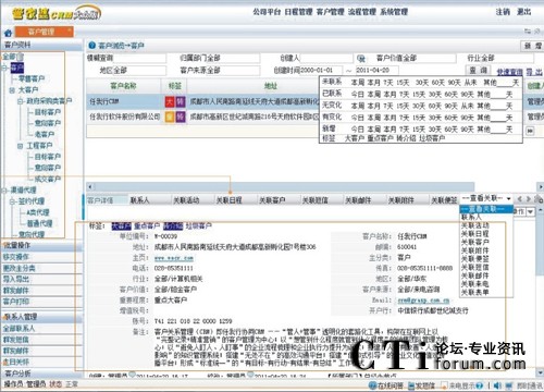 管理企業(yè)所有的目標(biāo)客戶(hù)和銷(xiāo)售員手中的意向客戶(hù);知道銷(xiāo)售員與每個(gè)客戶(hù)的詳細(xì)進(jìn)展;幫助管理銷(xiāo)售員手中的重點(diǎn)客戶(hù)或快成交客戶(hù);銷(xiāo)售員離職后客戶(hù)資料和他與客戶(hù)交往的所有記錄完整保留!