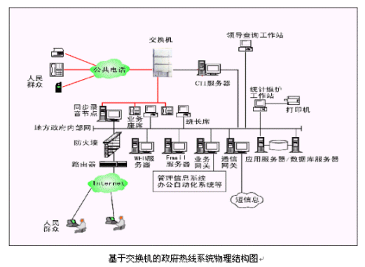 市民利用電話撥打某一特服號(hào)碼(如12345)進(jìn)入政府熱線系統(tǒng),12345政府熱線系統(tǒng)依托地方政府各類業(yè)務(wù)技術(shù)支持系統(tǒng)和網(wǎng)絡(luò)系統(tǒng),通過人工受理或自動(dòng)語(yǔ)音服務(wù)等方式全天24小時(shí)不間斷地為人民群眾提供各種服務(wù);形成了對(duì)外服務(wù)于百姓的無形窗口,對(duì)內(nèi)管理、分析、決策系統(tǒng)相結(jié)合的呼叫中心。