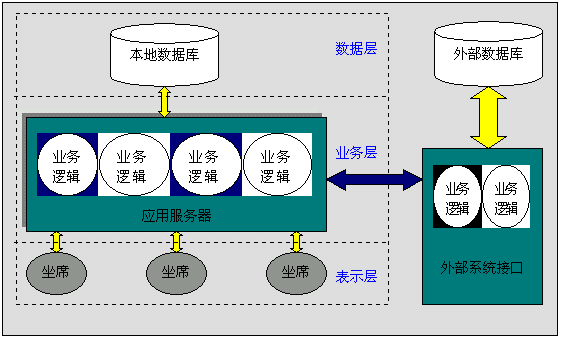 系統(tǒng)軟件體系結(jié)構(gòu)采用C/AS/DS三層結(jié)構(gòu),如下圖,客戶端通過(guò)應(yīng)用服務(wù)器上的業(yè)務(wù)邏輯訪問(wèn)所需數(shù)據(jù)源來(lái)實(shí)現(xiàn)相應(yīng)的業(yè)務(wù)功能。在應(yīng)用服務(wù)器軟件設(shè)計(jì)開(kāi)發(fā)中,采用面向?qū)ο蟮姆椒,將業(yè)務(wù)邏輯封裝成類(lèi),使系統(tǒng)更具靈活性和擴(kuò)展性。