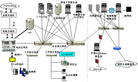 3)多種操作界面,系統(tǒng)界面模塊除可采用Dephi編寫(xiě)外,還可采用HTML/JAVA編寫(xiě),座席采用瀏覽器,界面美觀,系統(tǒng)維護(hù)方便;