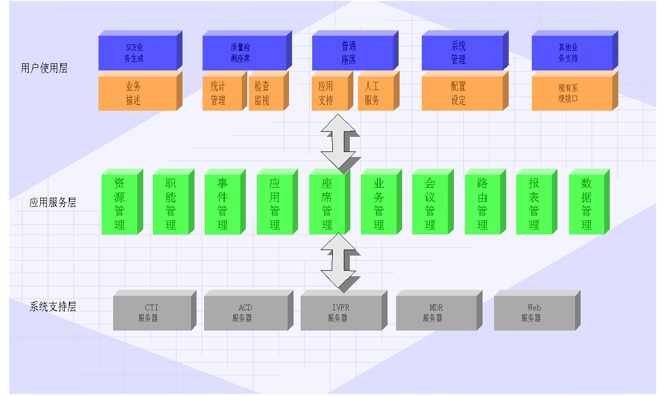 由客戶呼入組件、服務(wù)項目管理組件、座席管理組件、資源管理組件等多個組件共同搭建。