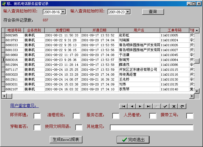 裝、移機(jī)服務(wù)監(jiān)督回訪實例: