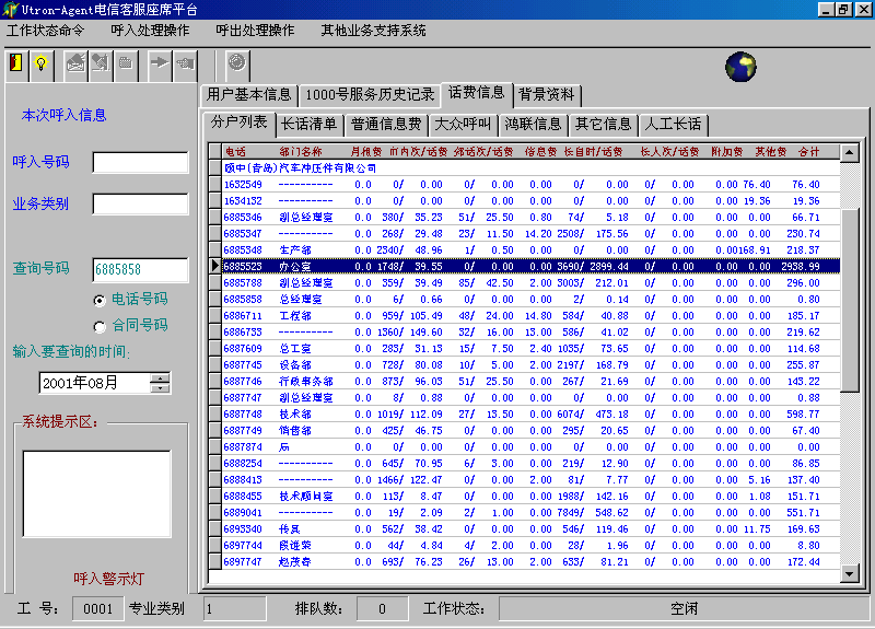 。。Utron-CC2000呼叫中心系統(tǒng)以其強(qiáng)大和靈活便捷的功能,優(yōu)良的性能價格比,能夠滿足日益發(fā)展的電信企業(yè)客戶服務(wù)的多方面要求,是為電信用戶提供高效率、全方位的周到服務(wù),開展增值業(yè)務(wù)強(qiáng)有力的工具。