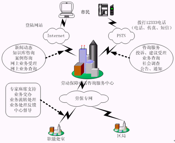 合肥市12333電話咨詢服務(wù)系統(tǒng)的建設(shè),使勞動(dòng)和社會(huì)保障業(yè)務(wù)延伸到市民、企業(yè)的身邊。克服地域和時(shí)間的限制,實(shí)現(xiàn)了每天24小時(shí)不間斷地隨時(shí)提供服務(wù)。該系統(tǒng)的建設(shè)將原本分散在各部門的對外服務(wù)業(yè)務(wù)內(nèi)容,集中在一個(gè)統(tǒng)一的對外服務(wù)"窗口",并與就業(yè)、失業(yè)、養(yǎng)老、醫(yī)療、生育及勞動(dòng)關(guān)系等管理系統(tǒng)建立接口,實(shí)現(xiàn)資源共享,為勞動(dòng)者提供包括電話、傳真、電子郵件、因特網(wǎng)等多種方式熱線咨詢服務(wù),從而架起勞動(dòng)者與勞動(dòng)部門之間密切聯(lián)系的橋梁,使廣大勞動(dòng)群眾的權(quán)益真正落到了實(shí)處。樹立勞動(dòng)和社會(huì)保障行業(yè)系統(tǒng)的良好服務(wù)形象。推動(dòng)勞動(dòng)保障局管理和服務(wù)的社會(huì)化,實(shí)行全面的標(biāo)準(zhǔn)化、規(guī)范化、制度化和網(wǎng)絡(luò)化的完善的服務(wù)。