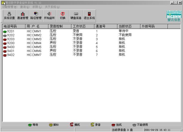 系統(tǒng)管理員根據(jù)權限可以對系統(tǒng)的任一路電話進行監(jiān)聽,此時被監(jiān)聽的說話雙方絲毫不會有所察覺,