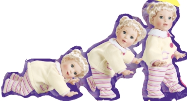 從機械上來說,夢想娃娃只是件簡單的藝術(shù)品。里面有三個馬達:一個用來走路,一個用來成長,一個用來動嘴。爬行和走路是由古怪的凸輪完成的。凸輪向玩具的某邊傾斜的時候玩具另一邊的手和腳就會向前移動。然后凸輪又向另一邊傾斜,這邊的手腳又向前移動,這樣,玩具就能夠爬行和走路了。