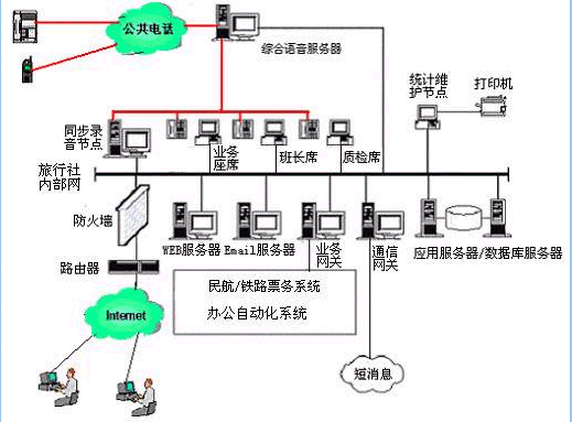 對(duì)于20個(gè)以下人工座席的中小型旅行社客戶服務(wù)中心系統(tǒng),則建議使用基于計(jì)算機(jī)語音板卡的方式,可以減少投資,同時(shí)具有良好的系統(tǒng)性能;對(duì)于大型的旅行社客戶服務(wù)中心系統(tǒng),可選用排隊(duì)交換機(jī)作為語音接入設(shè)備,以保障系統(tǒng)的高可靠性和穩(wěn)定性;大大提高了系統(tǒng)的適應(yīng)面。
