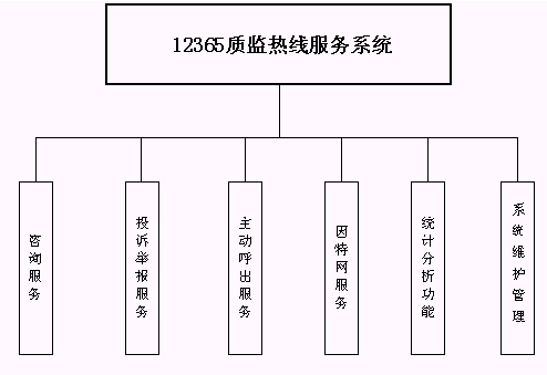 系統(tǒng)由一系列相對獨立而又緊密聯(lián)系的模塊軟件組成,集自動語音服務、自動留言服務、人工座席(質(zhì)量技術(shù)監(jiān)督局工作人員)服務、信息資料處理等于一體,提供了一套完整的12365質(zhì)監(jiān)熱線服務系統(tǒng)的解決方案。各個功能模塊之間即可獨立運行,也可自由組合進行工作,各質(zhì)量技術(shù)監(jiān)督局可以根據(jù)各自的特點靈活的進行模塊配置,為質(zhì)量技術(shù)監(jiān)督局量身定做。