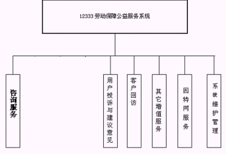 本12333勞動保障公益服務系統(tǒng)業(yè)務功能結構如下圖所示: