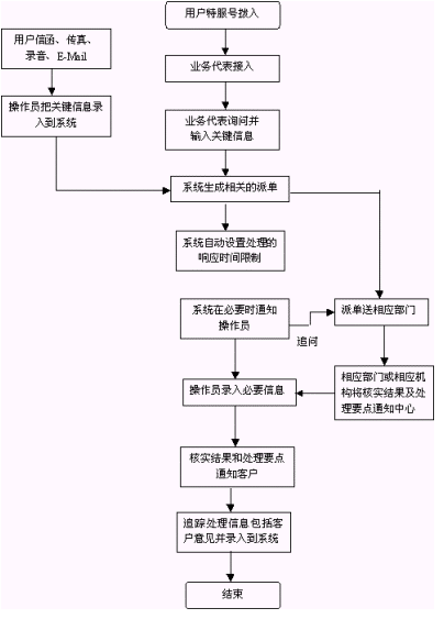 本系統(tǒng)能夠將數據庫中每天收到的的各種類型的信息進行整理后供查詢,或將信息的統(tǒng)計報表和其他的各種信息匯總輸出,上報給相關部門或領導。各相關部門調查處理結果和答復意見出來后,再由座席話務人員通知到本人。也可由系統(tǒng)自動撥通聯系電話,由系統(tǒng)通過傳真或電腦語音自動播報調查處理結果和答復意見來完成回饋。