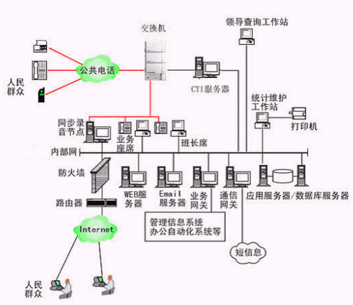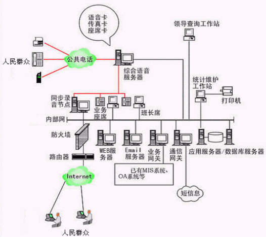 該系統(tǒng)的設計采用先進的三層CLIENT/SERVER網絡體系結構,集目前先進的計算機技術、通信技術、計算機電信集成(CTI)技術、多媒體呼叫接入技術、智能接入交換分配技術、數字語音處理技術、異構系統(tǒng)信息交互技術、INTERNET網絡技術、安全容錯技術、網絡組網技術等于一體,并與貴社保機關已有技術支持系統(tǒng)(如社保MIS系統(tǒng)、辦公自動化系統(tǒng)等)緊密結合在一起,突破時空的限制,通過人工座席、自動語音/傳真、社保機關相關人員等為群眾提供電話、傳真、電子郵件、因特網、手機、網絡電話等多種服務形式的周到、快捷、全方位的服務,為人民群眾與貴社保機關之間架起一座密切聯系的橋梁。