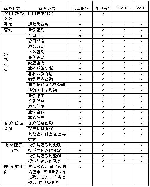 本系統(tǒng)具有自動(dòng)語(yǔ)音服務(wù)、人工坐席服務(wù)、呼叫轉(zhuǎn)接分發(fā)、信息咨詢(xún)、信息查詢(xún)、客戶(hù)投訴建議、通知服務(wù)、因特網(wǎng)服務(wù)、管理人員對(duì)語(yǔ)音記錄的查詢(xún)、外包業(yè)務(wù)、增值服務(wù)等功能,并且結(jié)合圖形化的管理、監(jiān)控界面,使得客戶(hù)隨時(shí)隨地可以利用身邊的各種通訊工具獲得本公共呼叫中心平臺(tái)的方便快捷的服務(wù)。