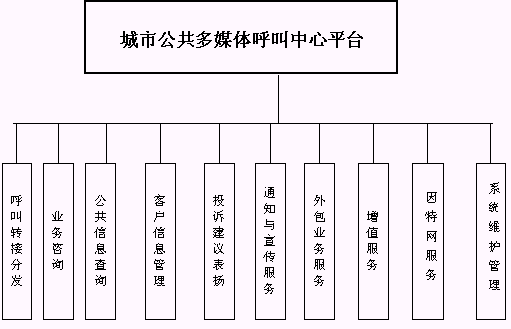 一期工程:城市公共多媒體呼叫中心平臺(tái)軟硬件基礎(chǔ)設(shè)施建設(shè)。