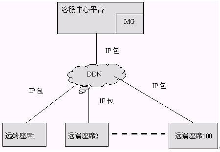 通過(guò)VOIP方式聯(lián)網(wǎng)時(shí),語(yǔ)音和傳真都是通過(guò)VOIP技術(shù)處理以IP包的形式在遠(yuǎn)端座席和中心之間進(jìn)行傳輸。在主呼叫中心和遠(yuǎn)端模塊,都需要設(shè)立媒體網(wǎng)關(guān),語(yǔ)音和傳真的聯(lián)網(wǎng)都是通過(guò)媒體網(wǎng)關(guān)處理后通過(guò)DDN相連的。