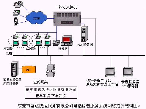 東莞市嘉達快運服務(wù)有限公司電話語音服務(wù)系統(tǒng)一期工程和二期工程采用基于在呼叫中心領(lǐng)域獲得廣泛應(yīng)用的一體化交換機的呼叫中心建設(shè)方案,具有優(yōu)異的不斷升級和擴展性能,分別于2003年12月20日和2004年4月17日順利上線投入運行,大幅提高了老客戶的滿意度和忠誠度,為該企業(yè)創(chuàng)造了很好的經(jīng)濟效益和社會效益,大大的提高客戶服務(wù)質(zhì)量和響應(yīng)速度。