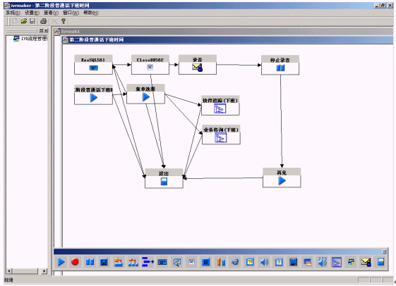 系統(tǒng)提供圖形化的語音流程生成環(huán)境,以方便用戶對語音流層進行定制。流程生成器是一套可視化的流程設計工具,通過拖拉圖標控件、鼠標連線即實現(xiàn)呼叫中心CTI流程的制作,同時,通過運行時鏈接動態(tài)連接庫(DLL),實現(xiàn)對業(yè)務數(shù)據(jù)庫的訪問;通過運行時鏈接用戶DLL,最靈活地與用戶應用系統(tǒng)結合;支持多種業(yè)務集成和動態(tài)流程控制,方便用戶拓展業(yè)務;采用事件驅動機制、開放的結構,滿足各種語音系統(tǒng)的需要;支持不限個數(shù)、級數(shù)的IVR結構,可滿足用戶非常復雜的需求。