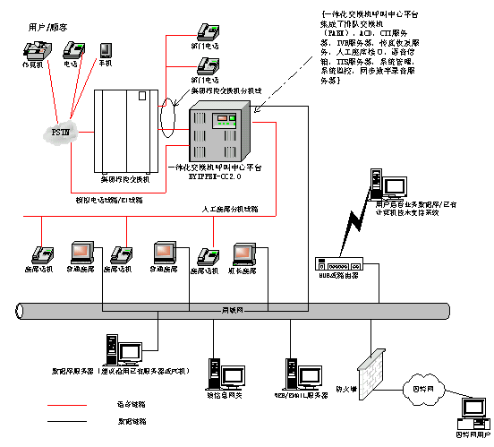 基于博宇科技一體化交換機呼叫中心平臺產(chǎn)品BYIPPBX-CC2.0的長安鈴木公司客戶服務中心系統(tǒng)網(wǎng)絡結構