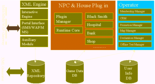 基于上述的因素,北京市萬(wàn)隆然博科技有限責(zé)任公司率先在國(guó)內(nèi)推出了無(wú)線互連游戲平臺(tái),把游戲的快速開(kāi)發(fā)、游戲的運(yùn)行引擎和游戲的客戶服務(wù)管理集成在一體。方便了短訊運(yùn)營(yíng)商的運(yùn)營(yíng)。同時(shí),然博科技通過(guò)分析各類(lèi)游戲的特點(diǎn)和無(wú)線交互方式的特點(diǎn)。具有獨(dú)創(chuàng)性的推出了一種游戲描述XML格式。通過(guò)然博科技提供的離線工具,游戲策劃人可以自己編寫(xiě)腳本,自己定義場(chǎng)景,進(jìn)行仿真。同時(shí),上傳到實(shí)際運(yùn)行的服務(wù)器端。真正的實(shí)現(xiàn)了短信門(mén)戶的個(gè)人創(chuàng)作工具。使得短信門(mén)戶真正的可以與傳統(tǒng)的Web門(mén)戶有相同的運(yùn)營(yíng)模式。ICP可以通過(guò)出賣(mài)短信服務(wù)器的硬盤(pán)空間來(lái)實(shí)現(xiàn)與內(nèi)容宿主共同盈利的模式。