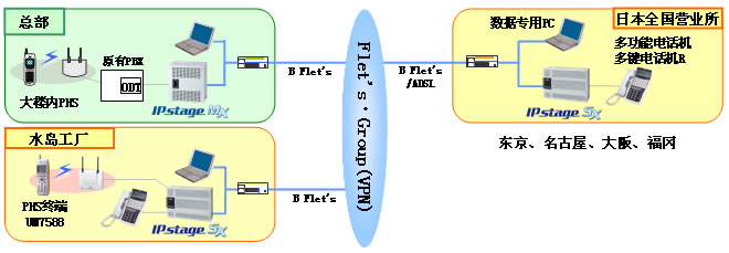 SX”通過SIP協(xié)作的IP電話系統(tǒng)。系統(tǒng)中所采用的“IPstage MX/SX”通過NTT西日本的VPN服務(wù)“Flet's・Group”相互連接,實現(xiàn)高音質(zhì)的內(nèi)線環(huán)境。使用內(nèi)線電話號碼進行事業(yè)所之間的通話聯(lián)系,可以直接與想聯(lián)系的對象通話,無需傳叫電話。進而,由于工廠采用了沖電氣所制造的PHS終端“UM7588”,可以在工廠任何地方實現(xiàn)直接電話聯(lián)系。導(dǎo)入該系統(tǒng)后,即使業(yè)務(wù)場所分處幾地,也能成功實現(xiàn)員工間的迅速溝通。