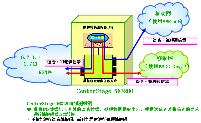 NX3200(以下簡(jiǎn)稱「NX3200」)」上,內(nèi)置了行業(yè)首例運(yùn)營(yíng)商級(jí)寬帶編解碼轉(zhuǎn)換功能。本裝置迅速對(duì)應(yīng)了ITU-T(注2)制定的國(guó)際標(biāo)準(zhǔn)G.711.1(注3)等寬帶編解碼器標(biāo)準(zhǔn),在運(yùn)用移動(dòng)網(wǎng)、固定網(wǎng)的各種語(yǔ)音編解碼器及視頻編解碼器之間,能同時(shí)進(jìn)行大容量通信。本產(chǎn)品即日起開(kāi)始銷(xiāo)往市場(chǎng)。
