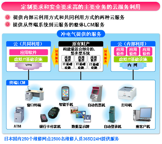 CTI論壇(ctiforum)12月9日消息(記者 楊佳林): 沖電氣開始銷售云計算服務(簡稱云服務)—“EXaaS™”,以滿足客戶在任意時間以任意方式使用的需求。“EXaaS™”是整套的IT周期管理云服務,包括系統(tǒng)引進咨詢、開發(fā)、采購和構筑、運營支持。該服務超越了以往的云服務,其服務范圍涵蓋了客戶端的終端機以及客戶網(wǎng)絡的所有部分,實現(xiàn)了客戶IT投資成本最優(yōu)化。
