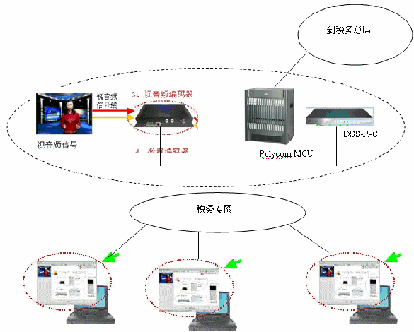 江西地稅組建了全省性的視頻會議網(wǎng)絡(luò),系統(tǒng)采用了Polycom的解決方案。會議網(wǎng)絡(luò)覆蓋到了縣一級的稅務(wù)機(jī)關(guān),但是由于投資和網(wǎng)絡(luò)條件的限制,無法實現(xiàn)全系統(tǒng)的覆蓋。在此情況下,深圳銳取軟件技術(shù)有限公司向江西地稅提供了流媒體的解決方案,以非常經(jīng)濟(jì)的方式把視頻會議系統(tǒng)延伸到了稅務(wù)系統(tǒng)內(nèi)的每一個桌面。而且它還解決了原有系統(tǒng)中會議過程的記錄問題,實現(xiàn)整個會議的聲音、視頻和數(shù)據(jù)的全程錄制,未與會人員可以隨時隨地登陸到服務(wù)器上點播和觀看會議過程。