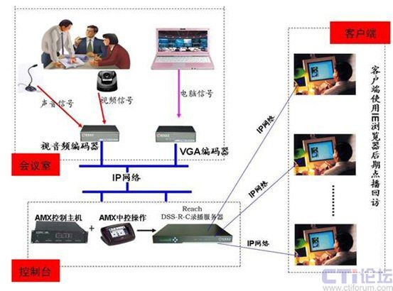 銳取多媒體錄播系統(tǒng)采用了分布式的產(chǎn)品架構(gòu),多媒體錄播服務(wù)器部署在后臺(tái)控制間或機(jī)房,各種類型的信號(hào)編碼器安裝在前端會(huì)議室,兩者之間通過(guò)IP網(wǎng)絡(luò)通訊,工程施工及后期設(shè)備內(nèi)文件資源管理都非常方便。