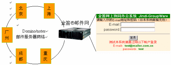 。1) 在不改變現(xiàn)有網(wǎng)絡(luò)硬件、軟件環(huán)境的情況下,添加一臺(tái)郵件網(wǎng)關(guān)服務(wù)器,通過(guò)統(tǒng)一的web登陸界面,輸入Email地址和密碼后,金笛?郵件網(wǎng)關(guān)會(huì)自動(dòng)根據(jù)內(nèi)部DNS找到該用戶所在的Domino Mail Server, 并通過(guò)標(biāo)準(zhǔn)郵件協(xié)議POP3提取該用戶的郵件,以web頁(yè)面形式顯示在用戶屏幕上。