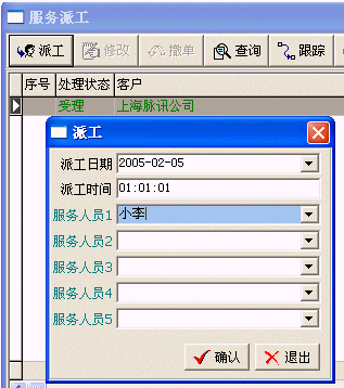 主要登記產(chǎn)品信息、客戶信息、服務(wù)合同、售后服務(wù)卡,接受客戶的投訴或請求,進行派工和派工的跟蹤。