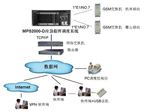 從上示組網(wǎng)圖中可以看到,整套MPS2000-D應(yīng)急指揮調(diào)度系統(tǒng)利用了移動(dòng)網(wǎng)管中心的數(shù)據(jù)網(wǎng)絡(luò)資源,通過SIP協(xié)議,在各個(gè)PC終端上通過軟終端的方式接入調(diào)度系統(tǒng),作為IP調(diào)度終端。平時(shí)可將該軟終端作為個(gè)人通訊助理終端,解決用戶的多種通信需求。并通過PC調(diào)度臺來對整套系統(tǒng)進(jìn)行應(yīng)急調(diào)度控制。